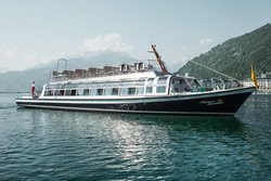 Greetings, with the wedding over and the bride and Groom happily wed, our third day in Austria brought us into the tourist phase of this trip. One thing is for sure, Austria never has a shortage of awesome spectacle and beauty, to prove the point, we went to Zell Am See to take a boat tour of Lake Zell on a really neat boat called the Kaiserin Elisabeth which was exactly like a boat used in the 1971 James Bond Movie "Diamonds Are Forever". I found that movie connections particularly intriguing, and though not luxurious, she wasn't without amenities. They provided a refreshment service, with beer, wine, soda pop, and fresh med expresso and I of course partook of the espresso, which was ideal on such a nice cool day.